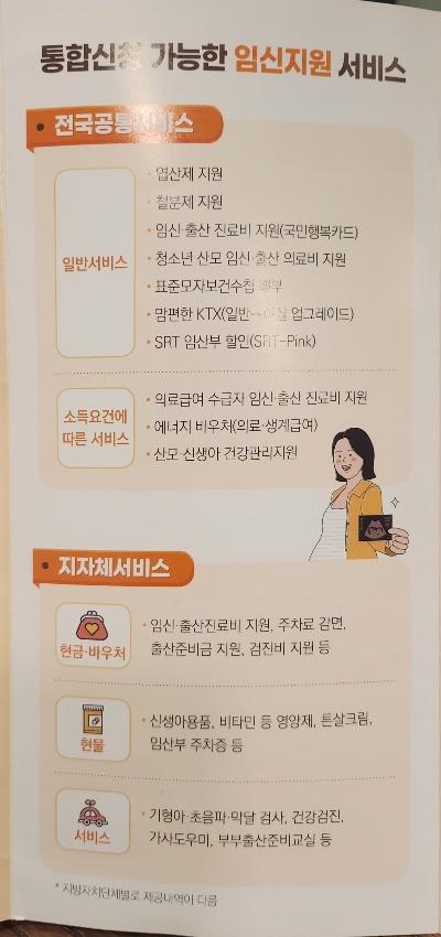 - 지자체 서비스 (임산부 주차증, 축하용품 등)